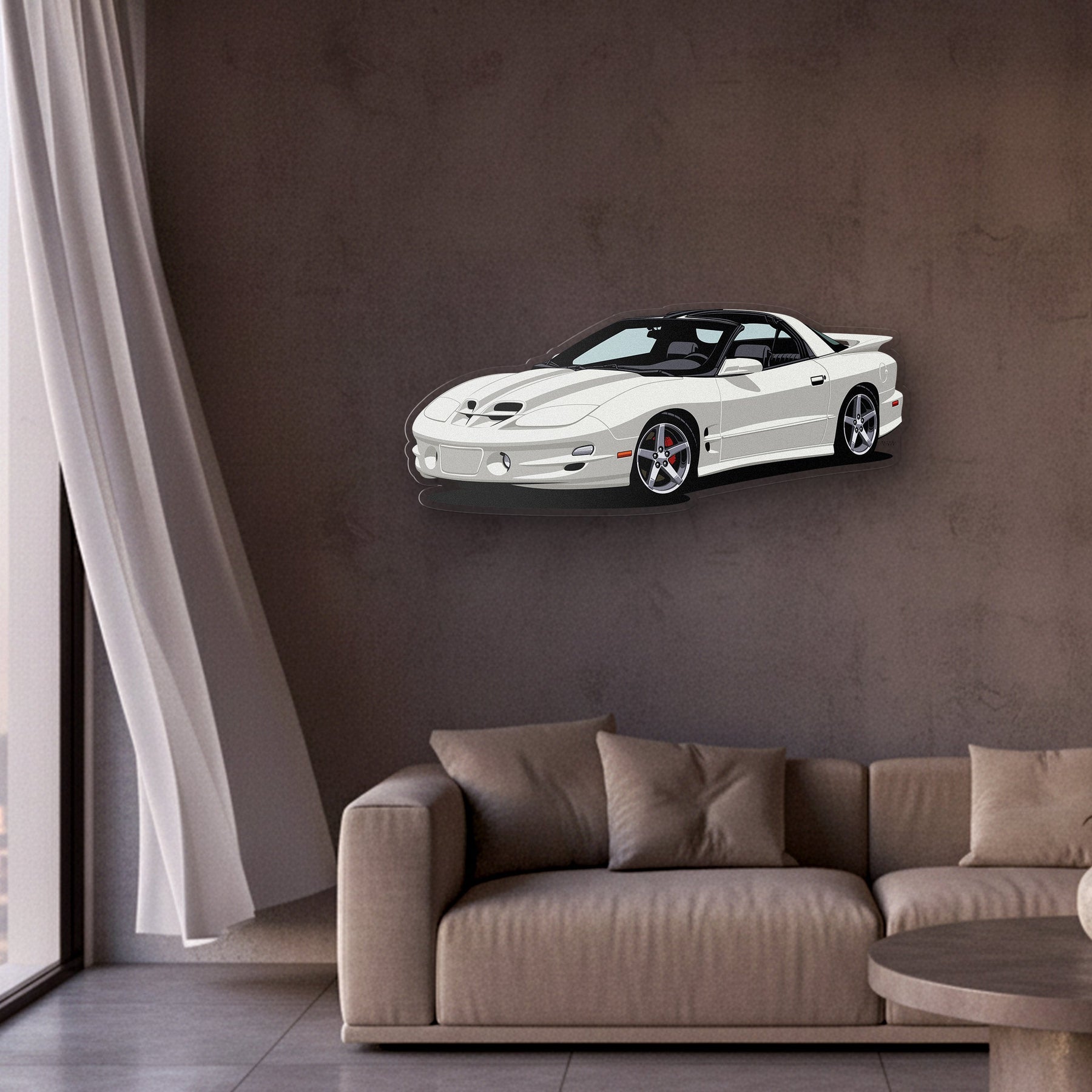 This eye-catching TransAm 1998 Front Angle Acrylic Print will add a touch of vibrancy and elegance to your room, office, or garage, and will catch the attention of any racing or car enthusiast.