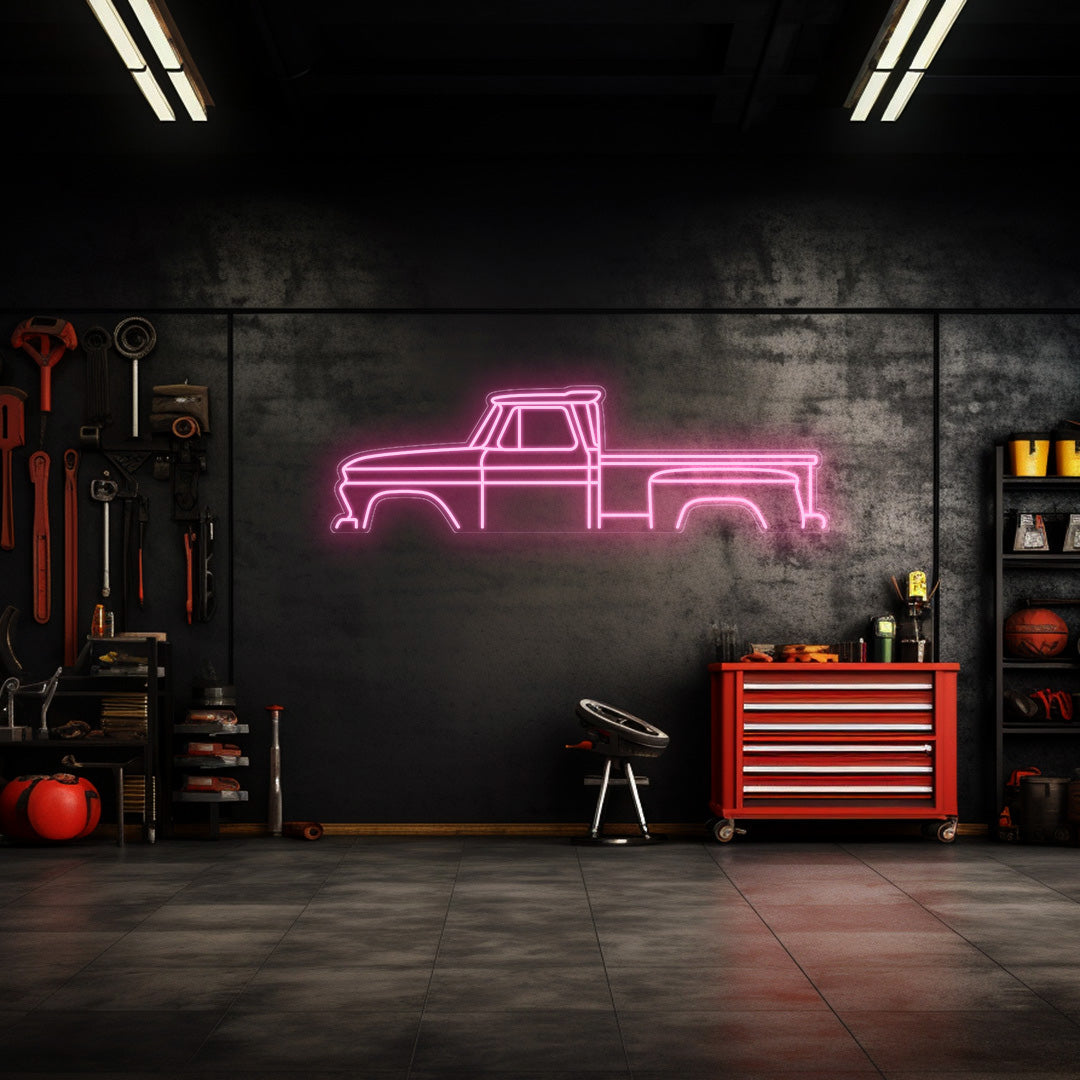 This eye-catching C10 1966 Neon Silhouette will add a beautiful spark of light and modern elegance to your room, office, or garage, and will catch the attention of any racing or car enthusiast.