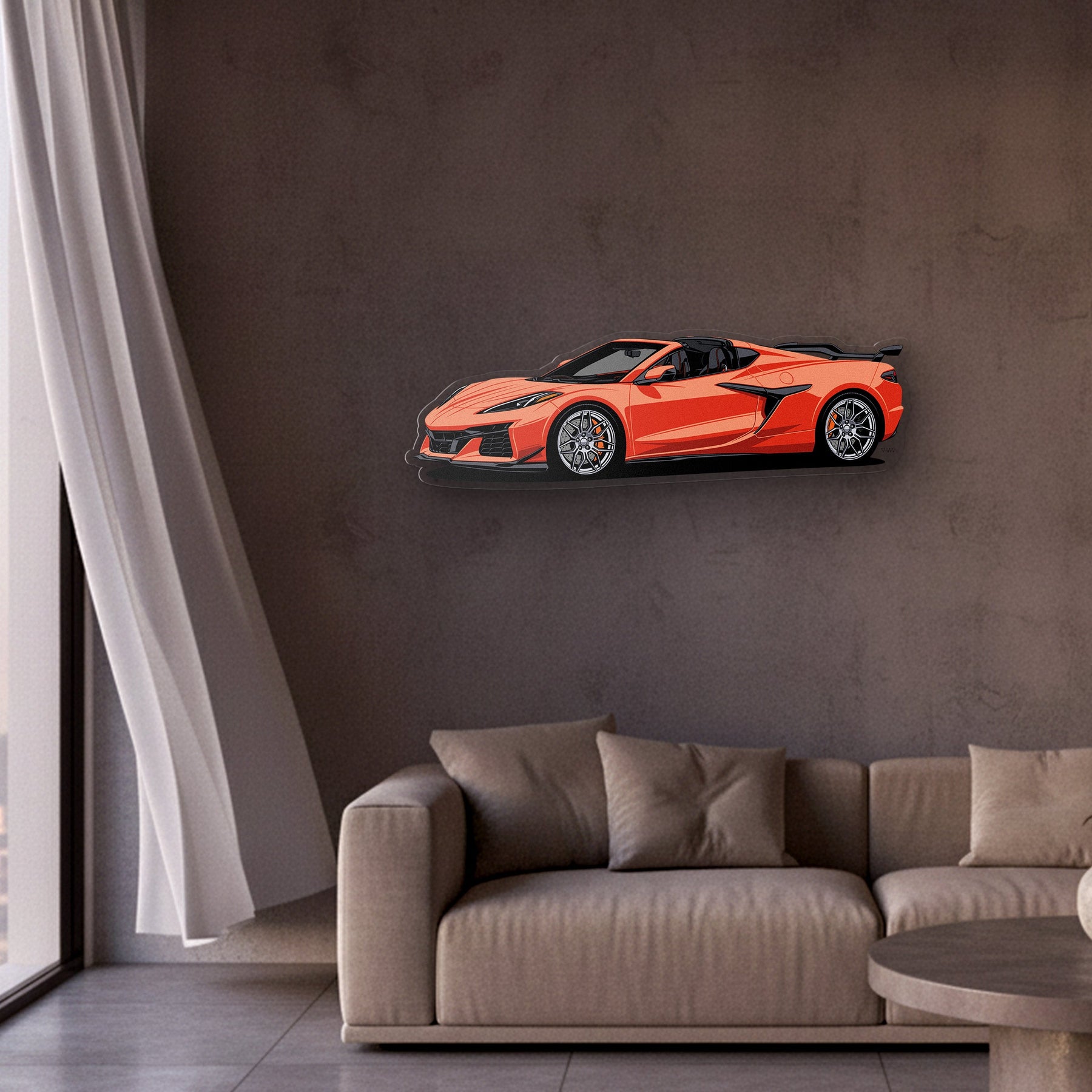 This eye-catching Corvette C8 Z06 Front Angle Acrylic Print will add a touch of vibrancy and elegance to your room, office, or garage, and will catch the attention of any racing or car enthusiast.