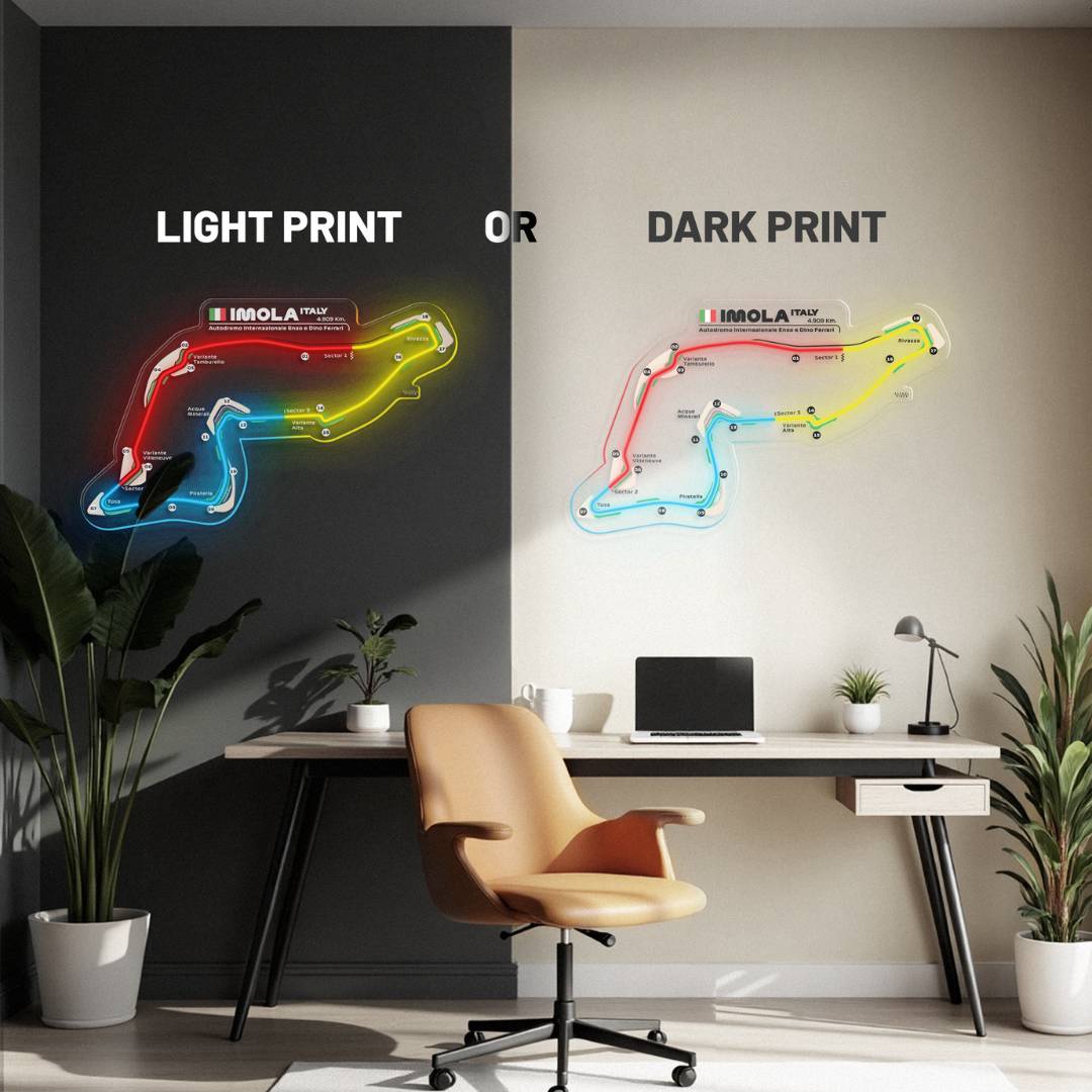 This Autodromo Internazionale Enzo E Dino Ferrari LED Race Track silhouette will add a bright spark of light to any room. Each track features the 3 iconic colors of Formula 1, the race track name alongside the distance and the country it's located in. It's the perfect way to add some color and improve the overall look while catching the attention of anyone, racing enthusiast or not.