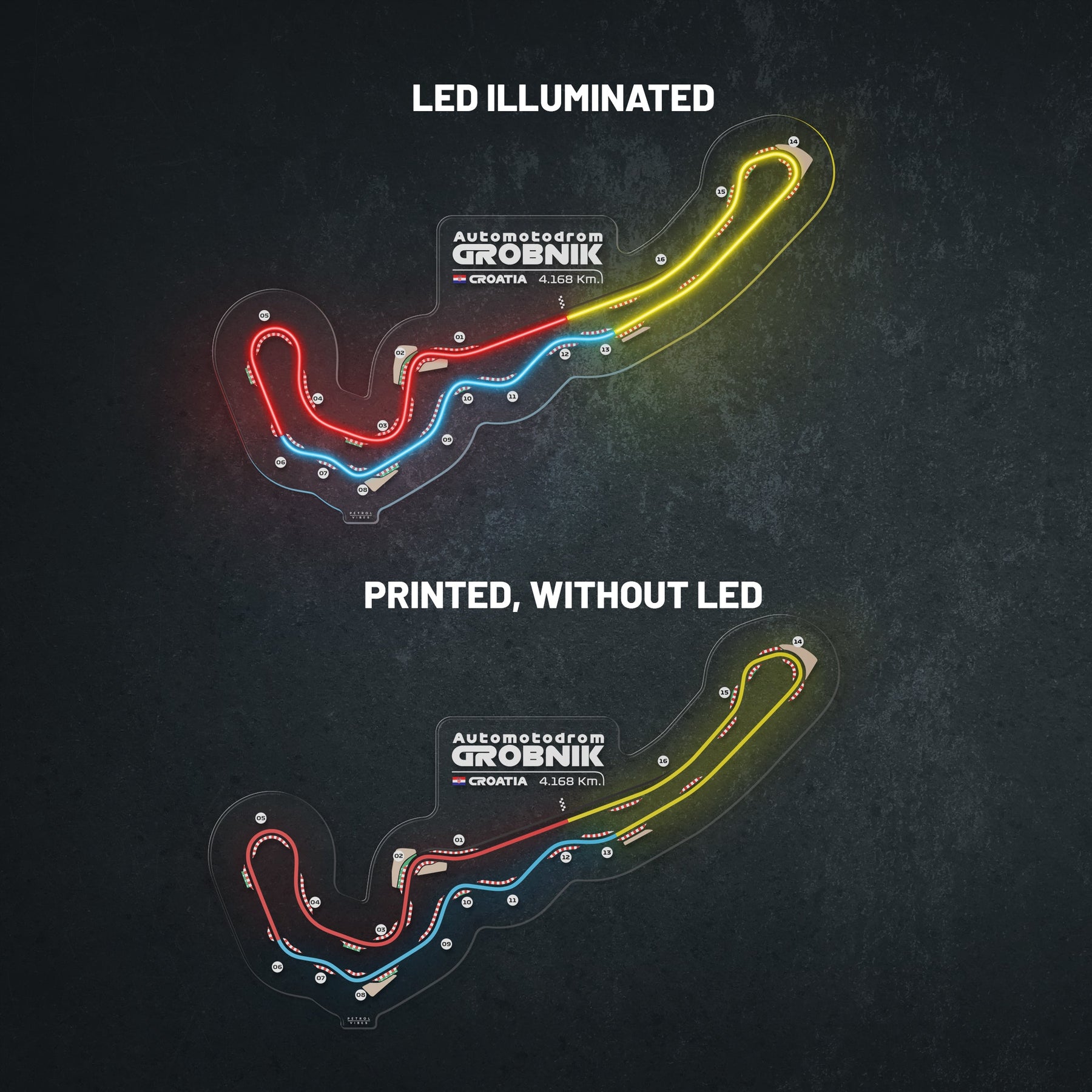 This Automotodrom Grobnik LED Race Track silhouette will add a bright spark of light to any room. Each track features the 3 iconic colors of Formula 1, the race track name alongside the distance and the country it's located in. It's the perfect way to add some color and improve the overall look while catching the attention of anyone, racing enthusiast or not.