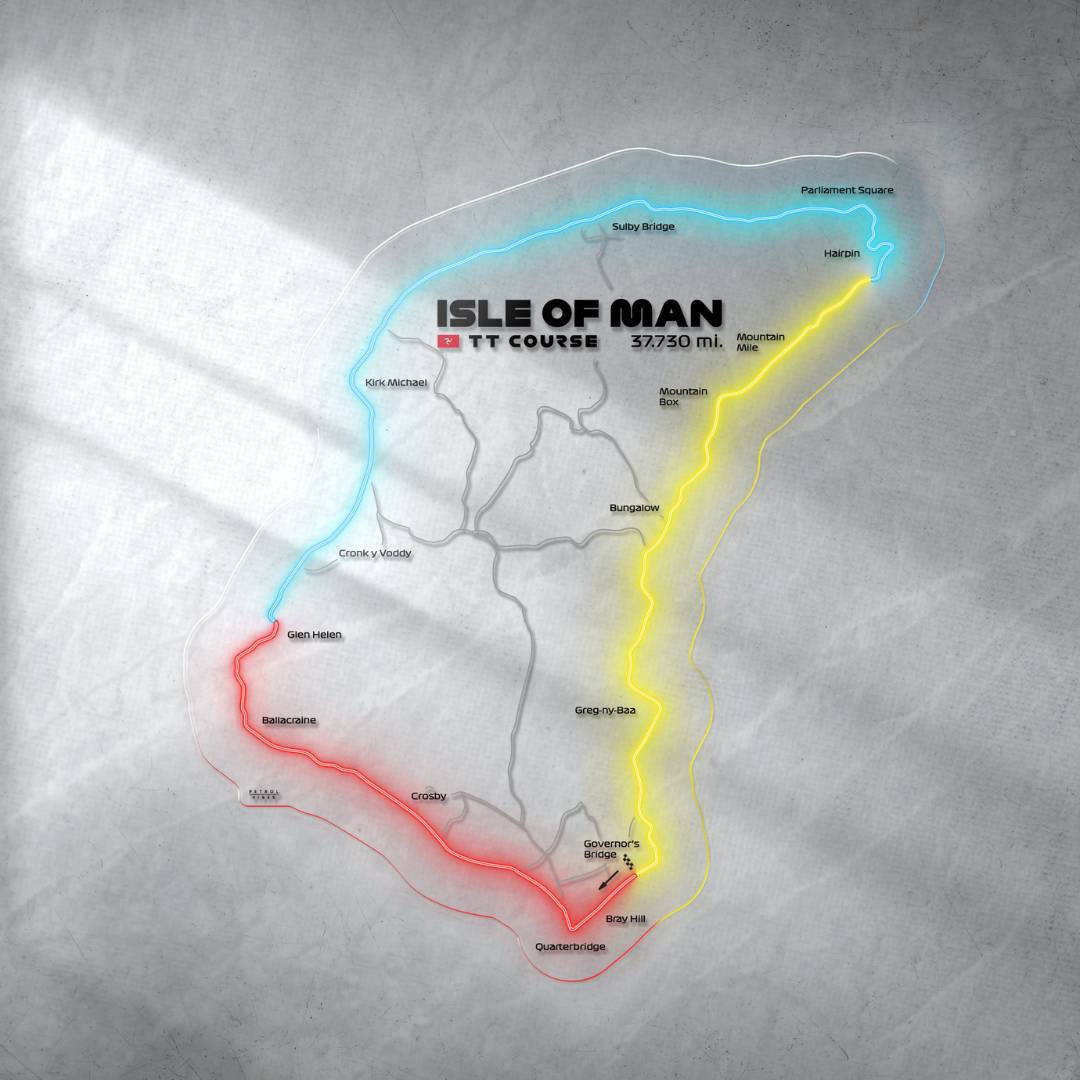 This Isle of Man TT LED Race Track silhouette will add a bright spark of light to any room. Each track features the 3 iconic colors of Formula 1, the race track name alongside the distance and the country it's located in. It's the perfect way to add some color and improve the overall look while catching the attention of anyone, racing enthusiast or not.