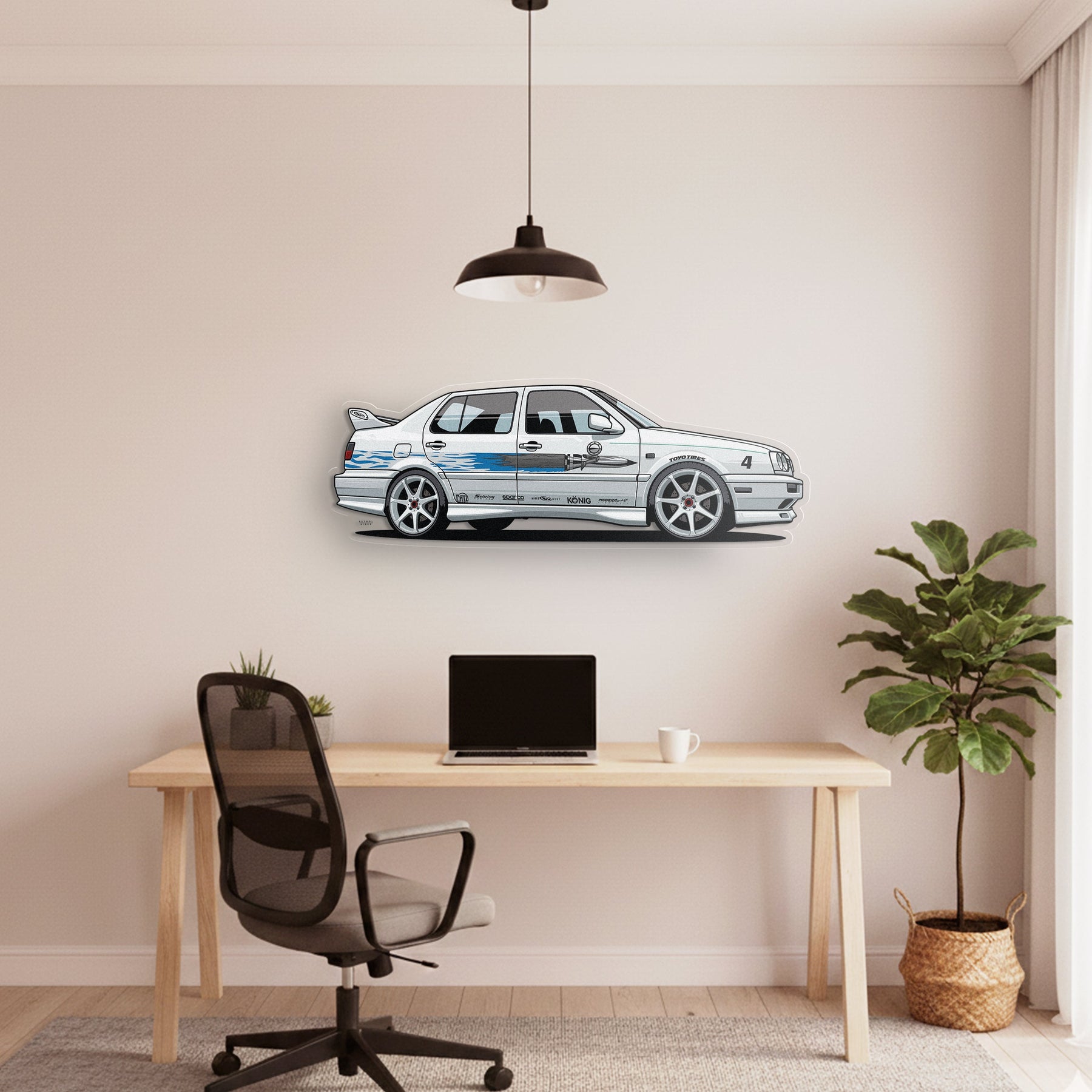 This eye-catching Jetta Front Angle Acrylic Print will add a touch of vibrancy and elegance to your room, office, or garage, and will catch the attention of any racing or car enthusiast.