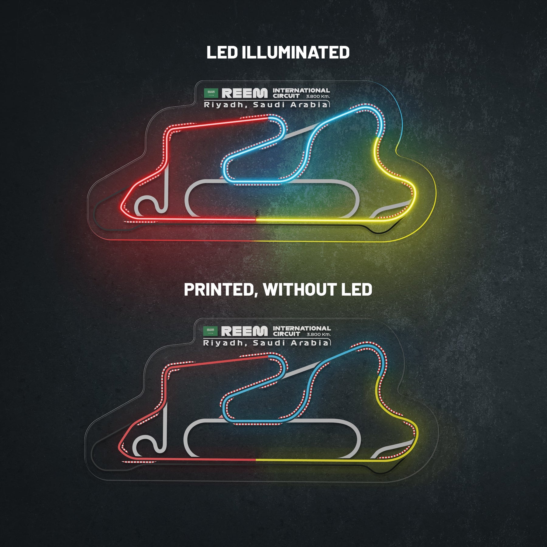 This Reem International Circuit LED Race Track silhouette will add a bright spark of light to any room. Each track features the 3 iconic colors of Formula 1, the race track name alongside the distance and the country it's located in. It's the perfect way to add some color and improve the overall look while catching the attention of anyone, racing enthusiast or not.