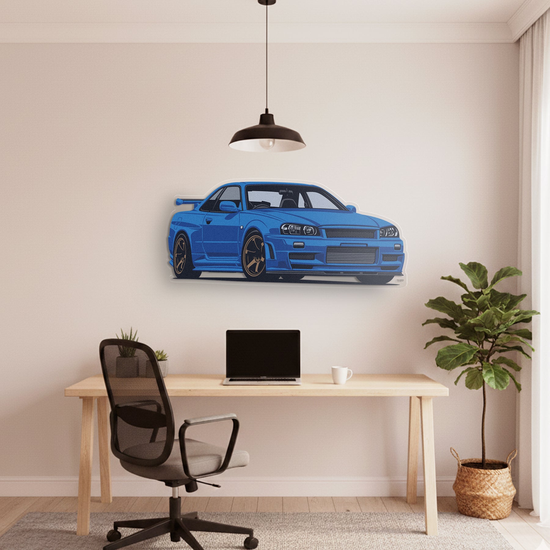 This eye-catching Skyline R34 GTR Front Angle Acrylic Print will add a touch of vibrancy and elegance to your room, office, or garage, and will catch the attention of any racing or car enthusiast.